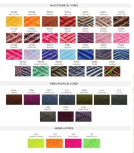 Quantidade de Cores: 61 Lisas, 27 Multicolor, 10 Fibra Negra e 4 Neon.